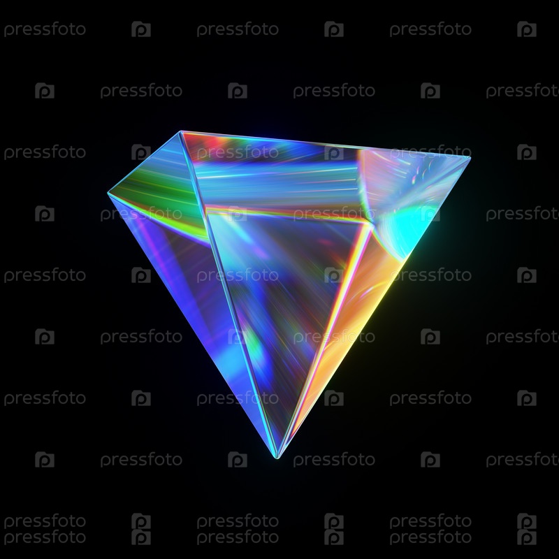 Трехмерная абстрактная стеклянная пирамида с подробным отражением и рассеиванием