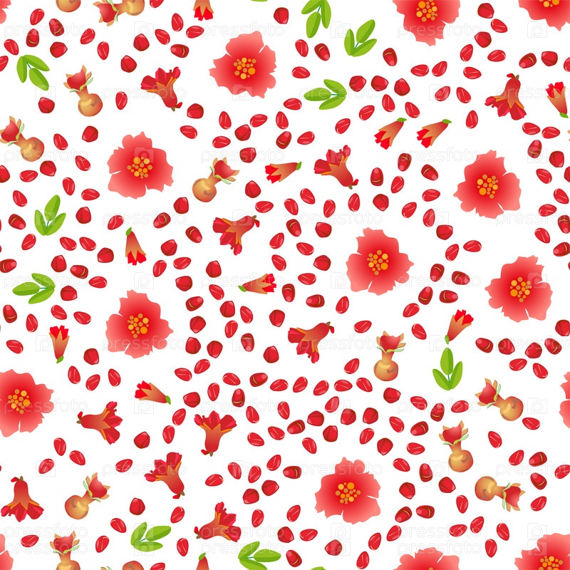 Бесшовный узор из экзотических фруктов граната. Смешные милые лица персонажей