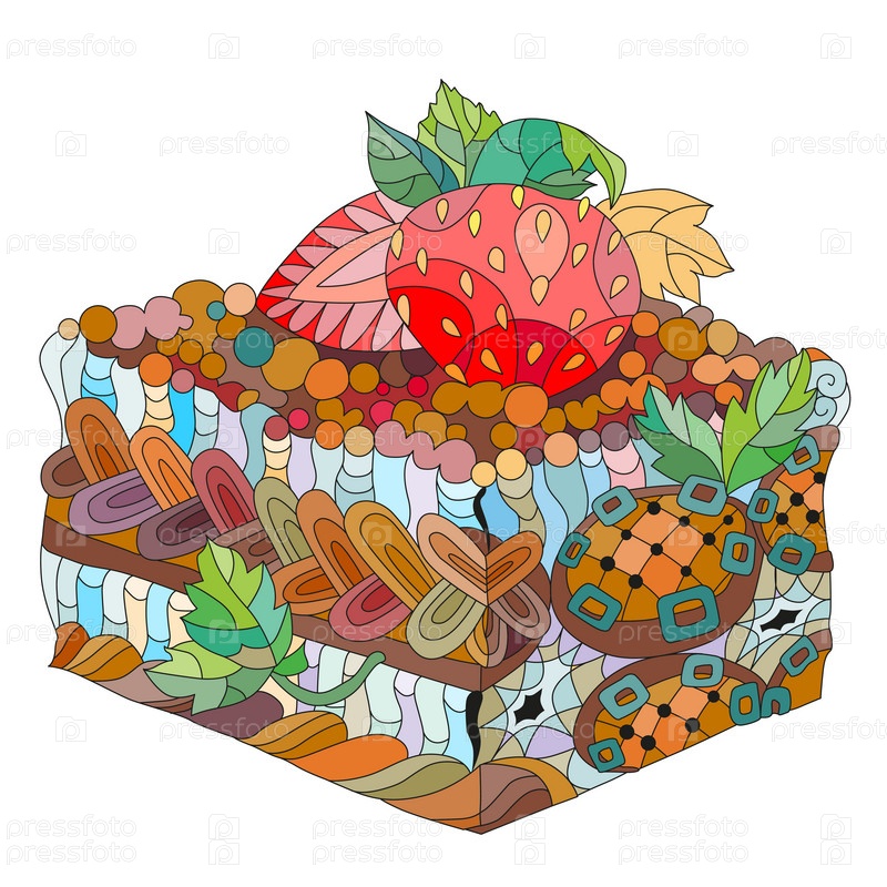Векторный кусок пирога с абстрактными орнаментами.Ручная иллюстрация для футболки в стиле зентенгл, каракули