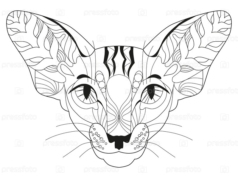 Zentangle стилизованная голова кошки. ручной рисунок векторной кружевки