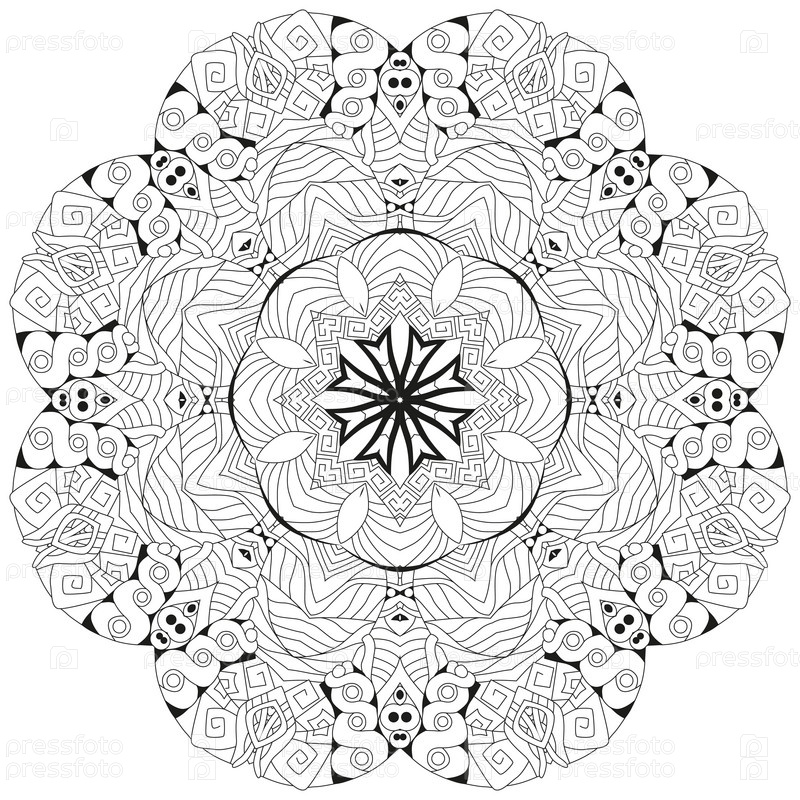 Круговой орнамент ручной работы для раскраски страницы