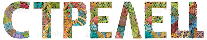 Художественный дизайн ручной росписи. Ручной рисунок слова "Стрелец" на русском языке для футболки и других украшений