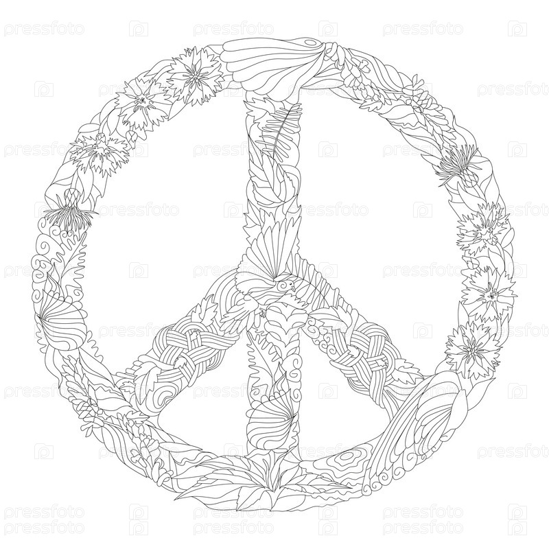 Знак мира в стиле зентагле, стилизированный под окраску и дизайн футболок, татуировок и других украшений