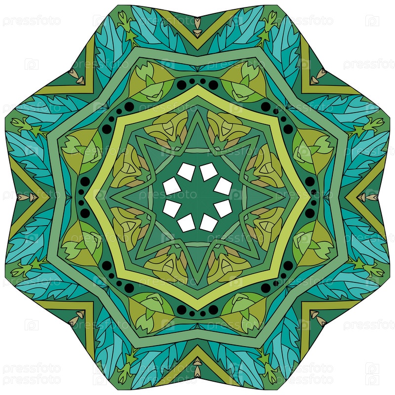Декоративные круглые украшения. Необычная форма цветка. Восточный вектор, схемы антистрессовой терапии. Переплетение элементов дизайна. Вектор логотипов йоги