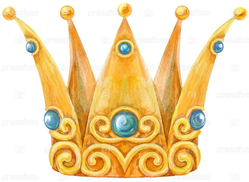Акварель рука рисовать иллюстрации золотая корона на белом фоне