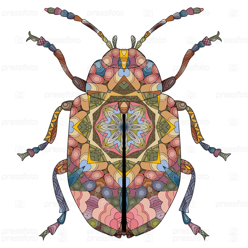 Жук в стиле зентангл для дизайна футболок, татуировок и других украшений