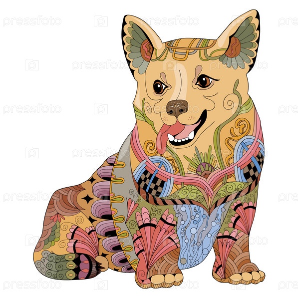 Зентангл стилизованная собака. Ручная рисованная декоративная векторная иллюстрация