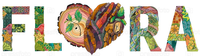 ФЛОРА с сердцем с текстурой коры дерева. Художественный дизайн ручной росписи