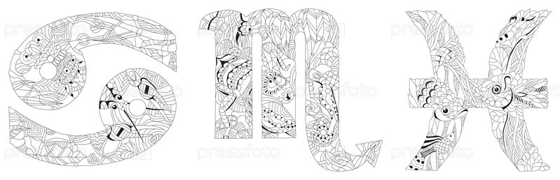 Ручная роспись художественного дизайна для окраски. Ручной рисунок слов Рыбы, Рак и Скорпион для футболки и других украшений