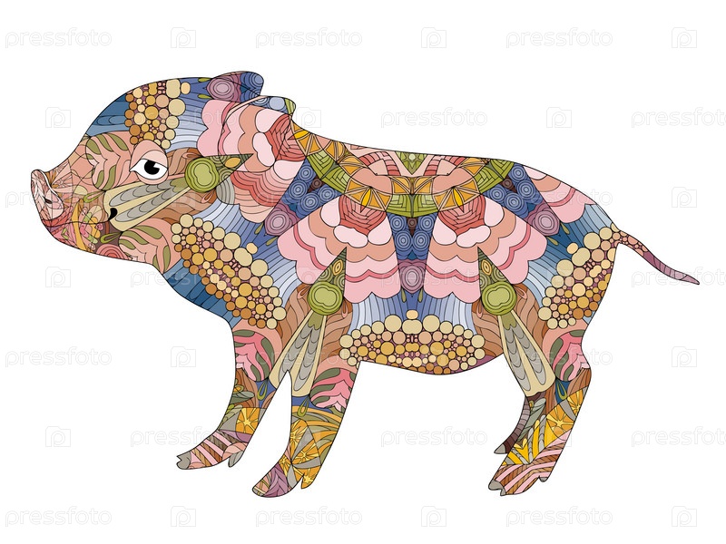 Зентангл стилизованная свинья. Ручная рисованная декоративная векторная иллюстрация