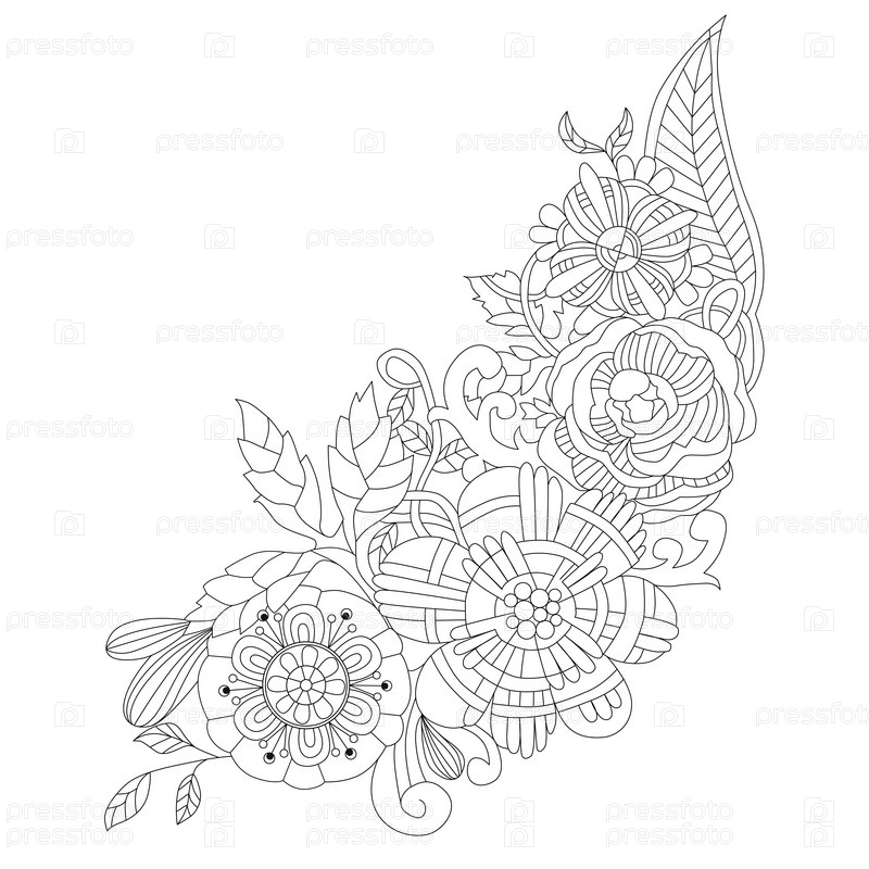 Иллюстрация цветков Zentangle.Зентангел или каракули для окраски