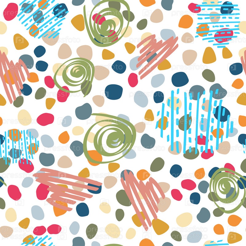 Абстрактные модные бесшовные узоры с нарисованными вручную красочными формами на белом фоне