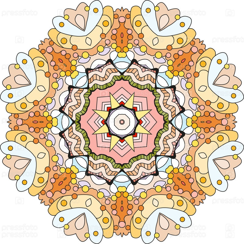 Декоративные круглые украшения. Необычная форма цветка. Восточный вектор, схемы антистрессовой терапии. Переплетение элементов дизайна. Вектор логотипов йоги