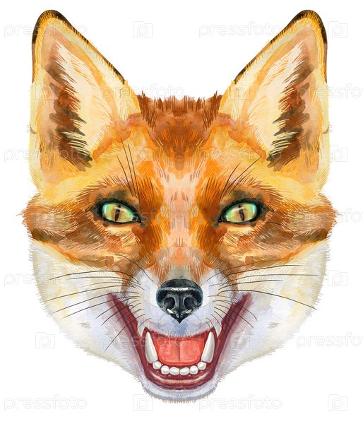 Портрет лисы. Иллюстрация акварели оранжевой лисы. Прекрасный мир дикой природы