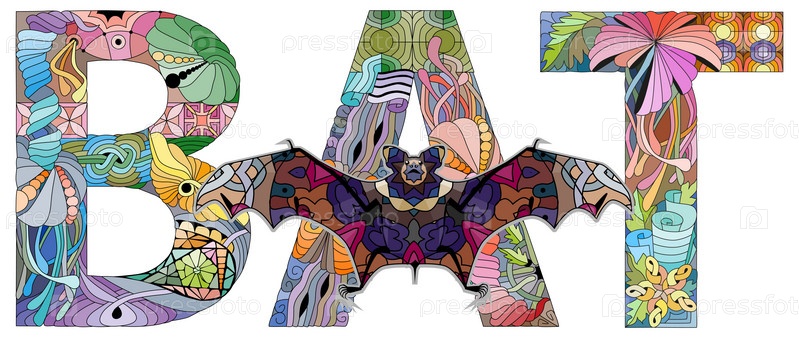 Художественный дизайн ручной росписи.Ручная рисование слова BAT для футболок и других украшений
