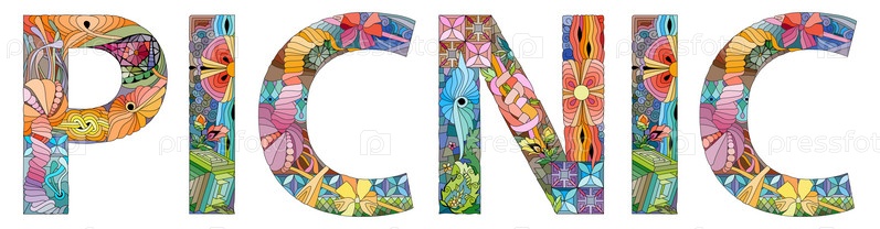 Художественный дизайн ручной росписи.Ручная рисование слов PICNIC для футболок и других украшений