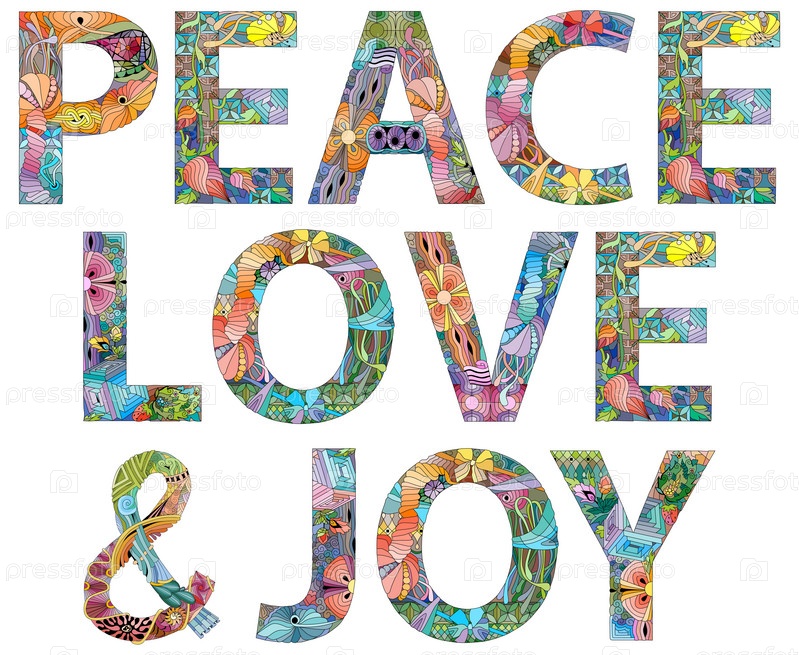 Художественный дизайн ручной росписи.Ручное рисование слов PEACE LOVE and JOY для футболок и других украшений