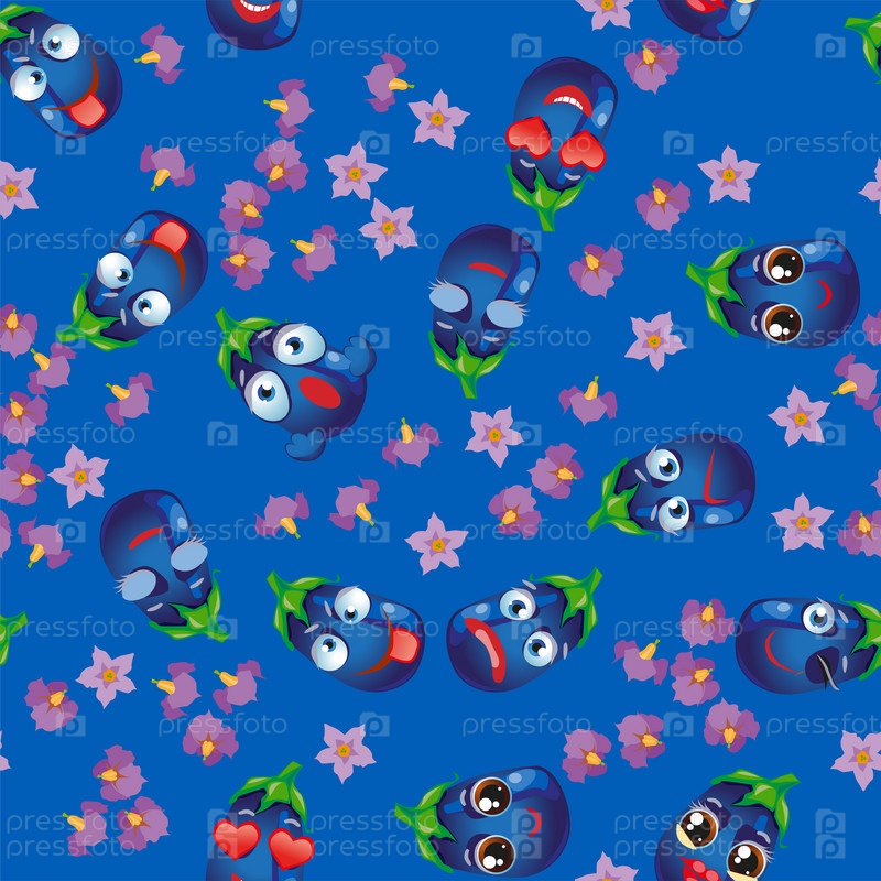 Бесшовный фон овощной баклажан. Смешные милые лица персонажей