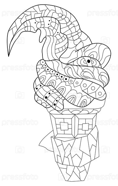 Мороженое нарисовано черно-белым контуром для раскраски страницы