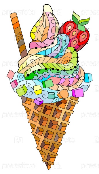 Ручно нарисованная красочная иллюстрация мороженого zentangle