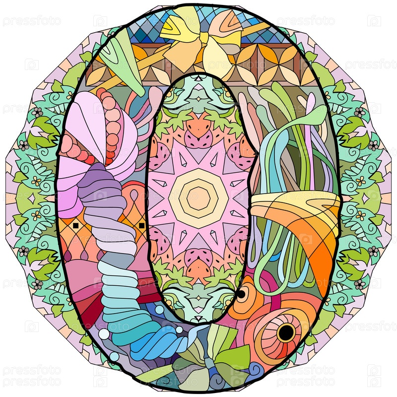 0 номер винтажного шрифта на мандале. Дизайн гравировки. Векторная иллюстрация