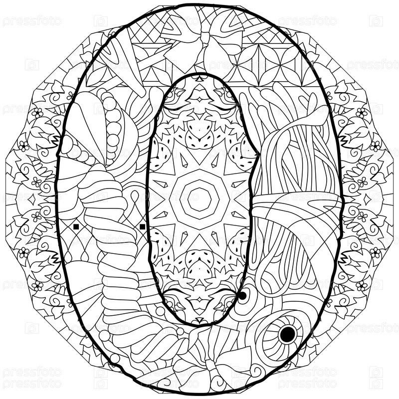 Число ноль на мандале Изолированная иллюстрация зэнтгел для окраски