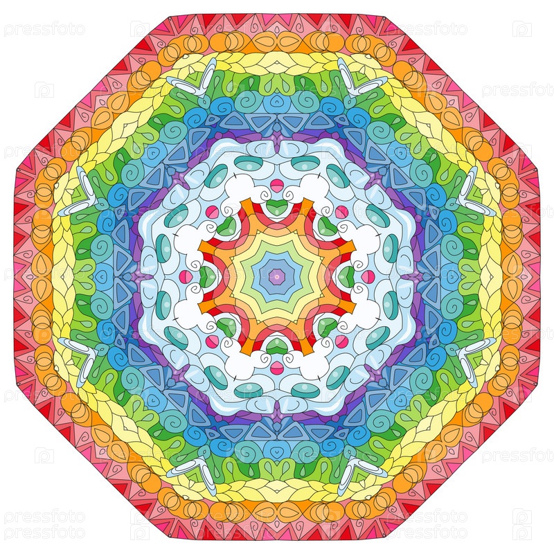Декоративные круглые украшения. Необычная форма цветка. Восточный вектор, схемы антистрессовой терапии. Переплетение элементов дизайна. Вектор логотипов йоги