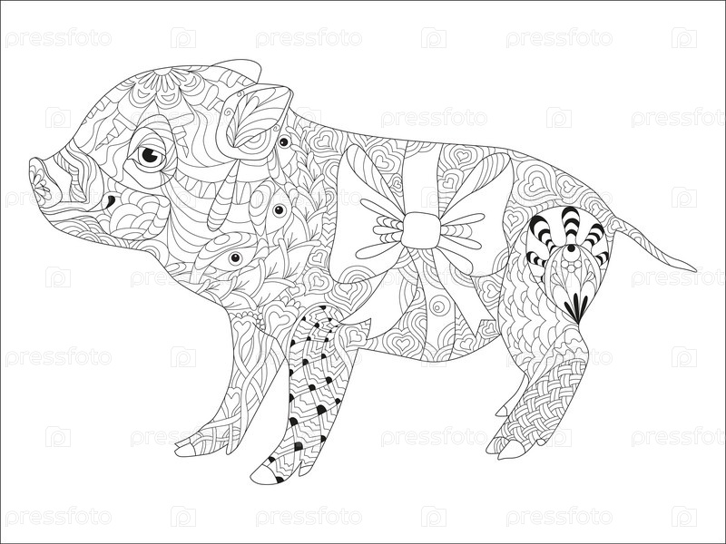 Иллюстрация Zentangle с свиньей. Клуб дзен или поросенок-каракули. Книга красок для домашнего питомца