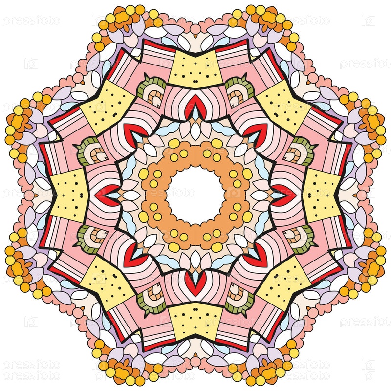Декоративные круглые украшения. Необычная форма цветка. Восточный вектор, схемы антистрессовой терапии. Переплетение элементов дизайна. Вектор логотипов йоги
