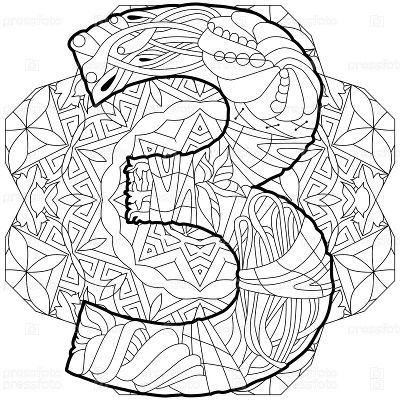 Три числа на мандале Изолированная иллюстрация зентагла для окраски
