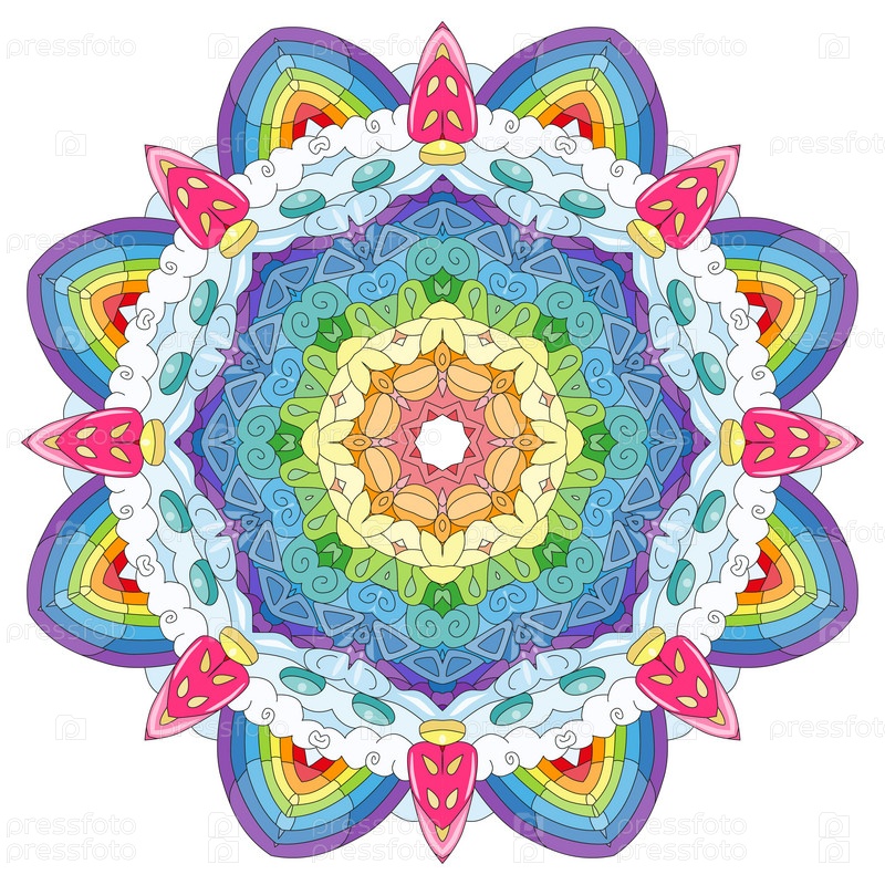 Декоративные круглые украшения. Необычная форма цветка. Восточный вектор, схемы антистрессовой терапии. Переплетение элементов дизайна. Вектор логотипов йоги