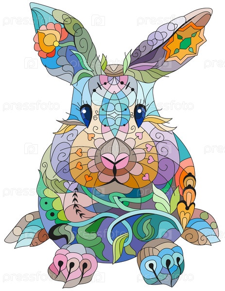 Весенний кролик. Пасхальный фон с творческим милым кроликом. Красочная векторная иллюстрация