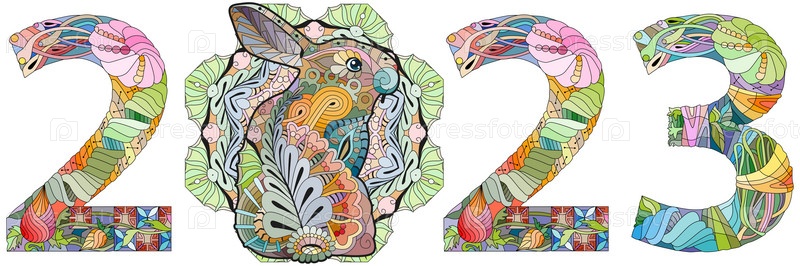 Zentangle стилизованный кролик номер 2023. ручной рисунок векторной ожерелье