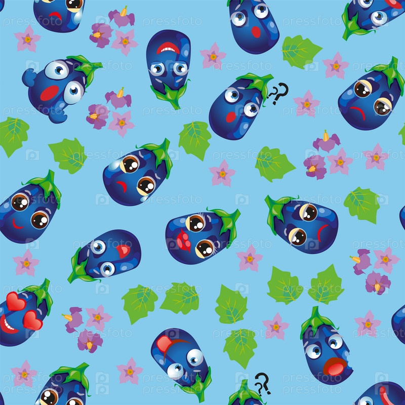 Бесшовный фон овощной баклажан. Смешные милые лица персонажей