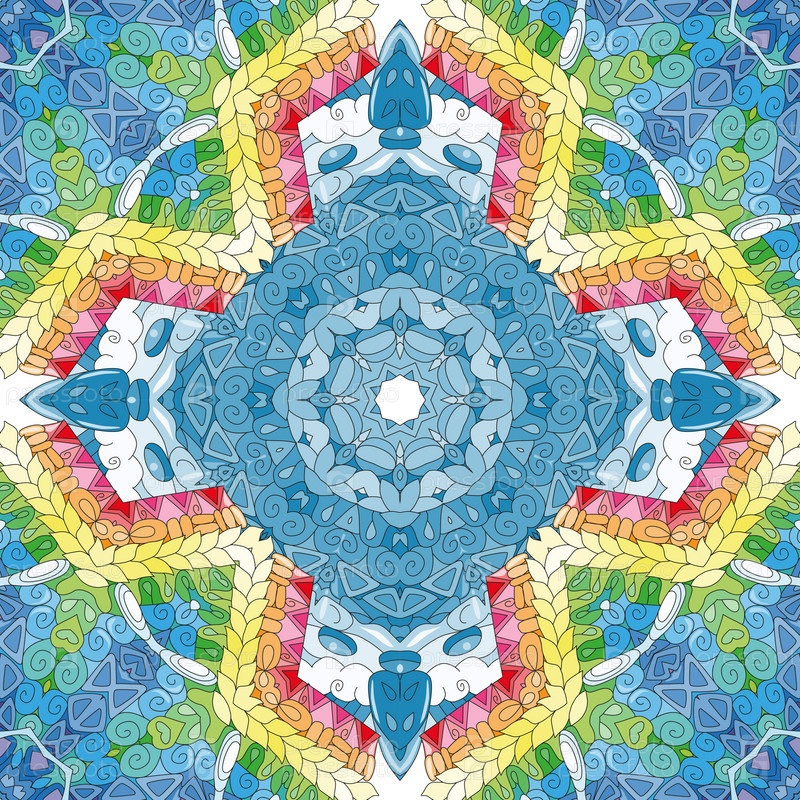 Декоративные квадратные бесшовные орнаменты. Необычная форма цветка. Восточный вектор, схемы антистрессовой терапии. Переплетение элементов дизайна