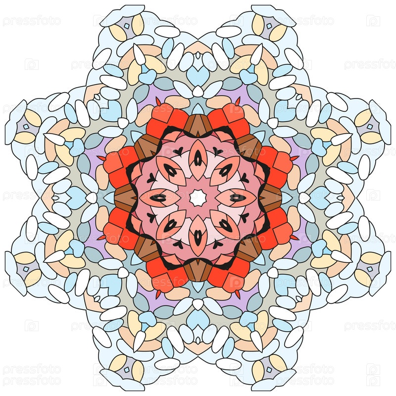 Декоративные круглые украшения. Необычная форма цветка. Восточный вектор, схемы антистрессовой терапии. Переплетение элементов дизайна. Вектор логотипов йоги