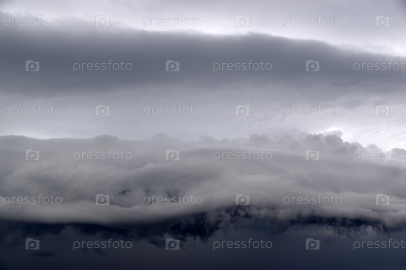 Штормовые ураганные синие свинцовые рваные облака на горизонте