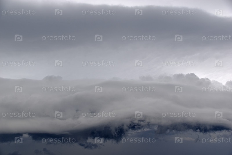 Штормовые ураганные синие свинцовые рваные облака на горизонте