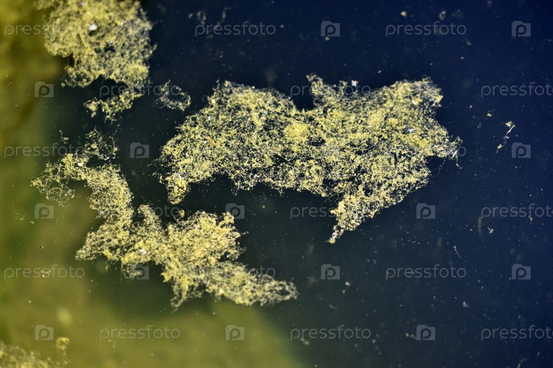 Зеленые водоросли на поверхности воды болота