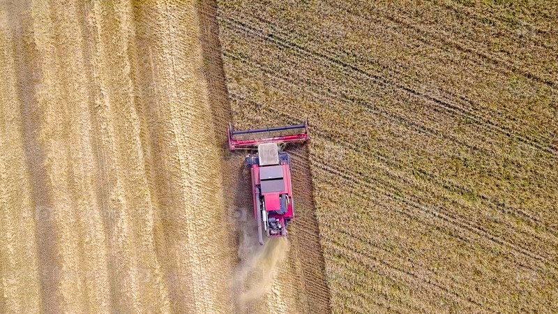 Зерноуборочный комбайн собирает пшеницу на поле