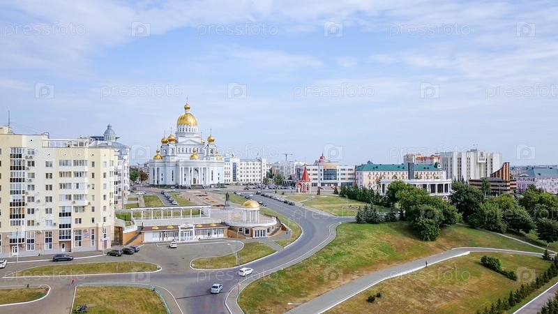 Собор святого благоверного воина Федора Ушакова. Саранск, Россия. Красивый панорамный вид на город