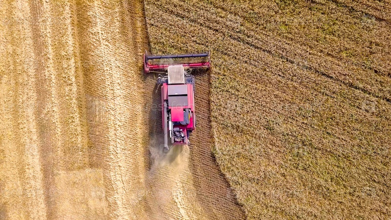Зерноуборочный комбайн собирает пшеницу на поле