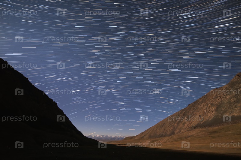 Следы звезд в виде линий. Вид в горах. Кыргызстан