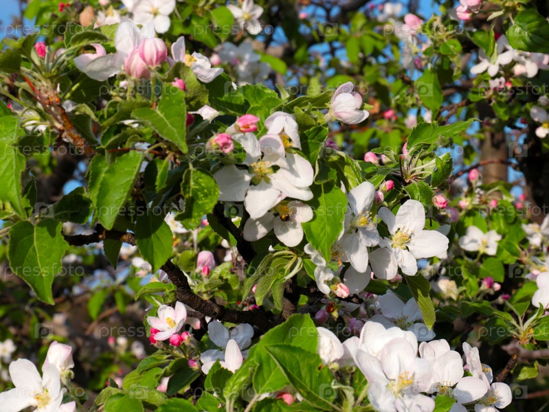Яркие белые цветы на ветвях яблони в весеннем саду