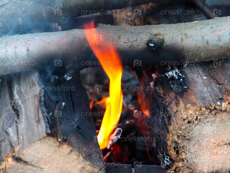 Раскаленное пламя и куски угля в огне