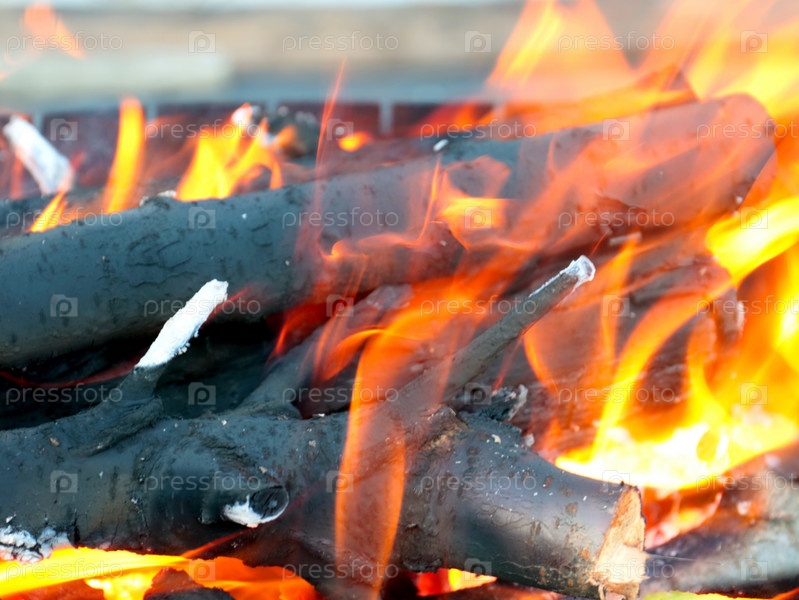 Раскаленное пламя и куски угля в огне