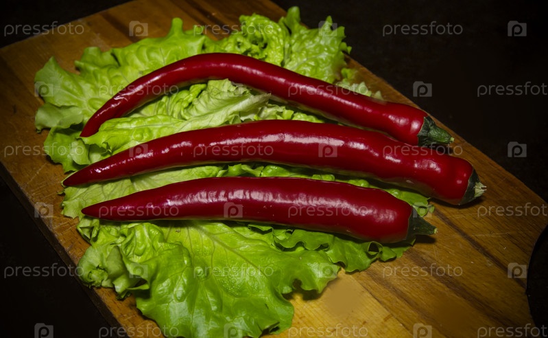 Острый перец чили и зеленый салат