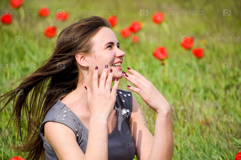 Красивая фея маленькая девочка в поле среди цветов тюльпана