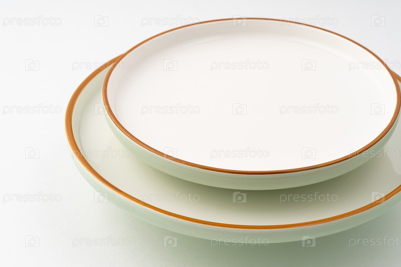 Набор керамической посуды на белом фоне