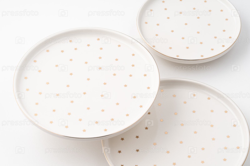 Керамические тарелки, изолированные на белом фоне